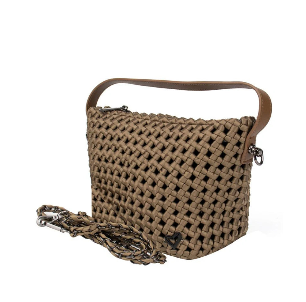Designed to carry your essentials with ease, the Bordon features a perfect day for night size bag with a removable woven chain strap—so you can wear it as a hsandbag or a crossbody. The zipper-top design keeps things simple, and is security for your valuables.