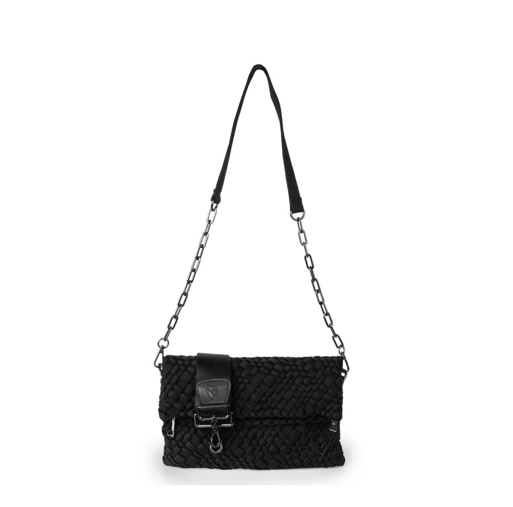 - Can be worn as a clutch or a crossbody when using coordinating chain crossbody strap. Day to night with one bag.