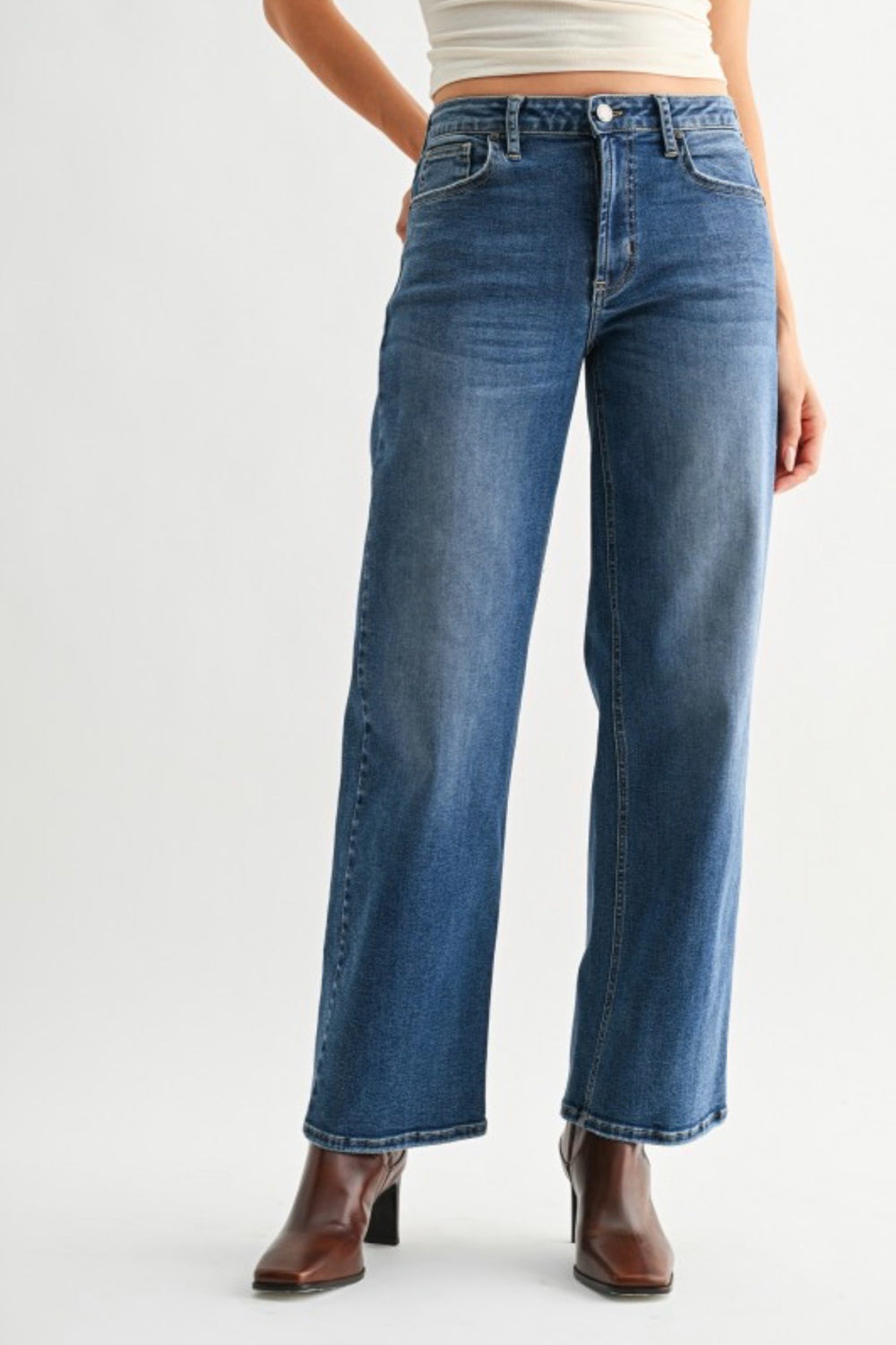 Sitting comfortably at the waist and falling straight through the leg, these mid-rise jeans create a timeless silhouette that pairs effortlessly with any outfit. The medium wash adds a modern, versatile touch for everyday wear.