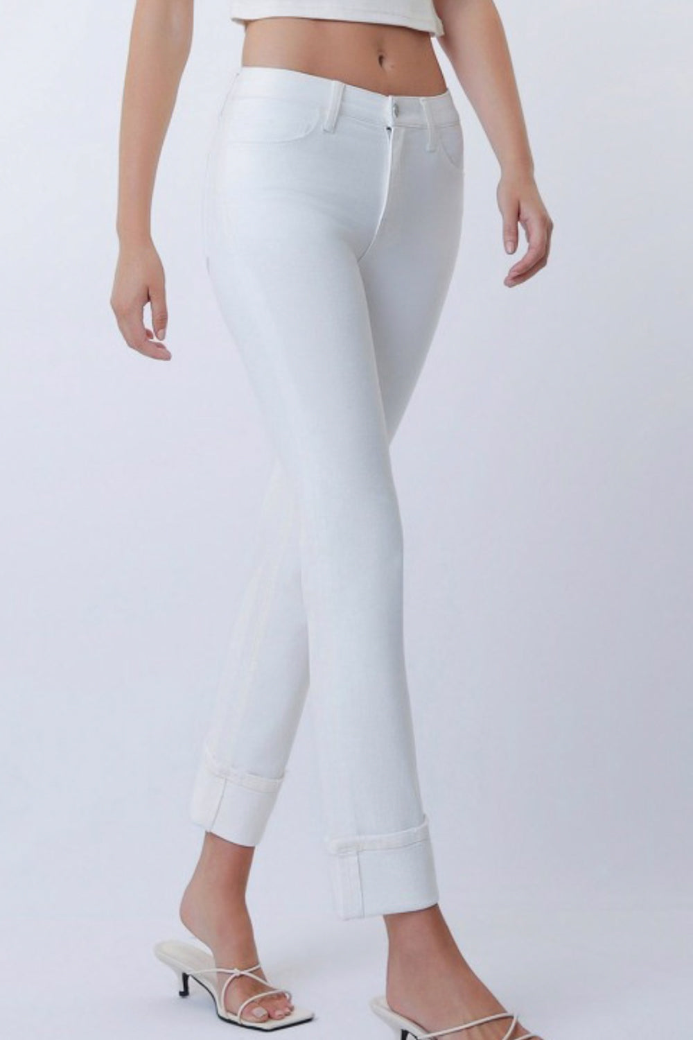 MID RISE CUFFED CROP SLIM STRAIGHT JEANS COMFORT STRETCH DENIM, MID RISE WAIST, 5 POCKETS, SINGLE CUFF HEM, CROPPED LENGTH, OPTIC WHITE, SLIM STRAIGHT JEANS