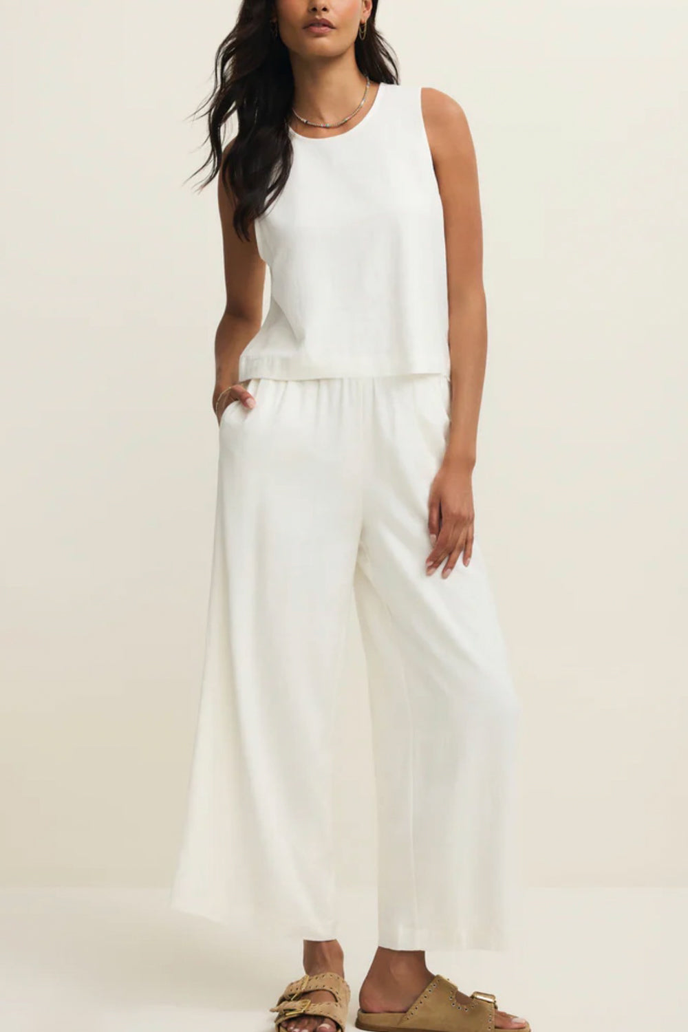 Detailed with an elastic waistband, side seam pockets, and washed linen blend fabric, these high rise pants will be a forever staple in your wardrobe. Make it a set with the Sloane Linen Top.