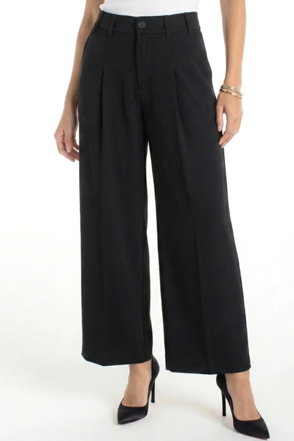This high rise trouser is all about effortless confidence. Soft pleats create movement through the wide leg, while a clean front keeps the look polished and easy to wear. Designed to sit comfortably at the waist with just the right amount of structure, it feels pulled together without trying too hard. Dress it up with a blazer or keep it relaxed with a knit.