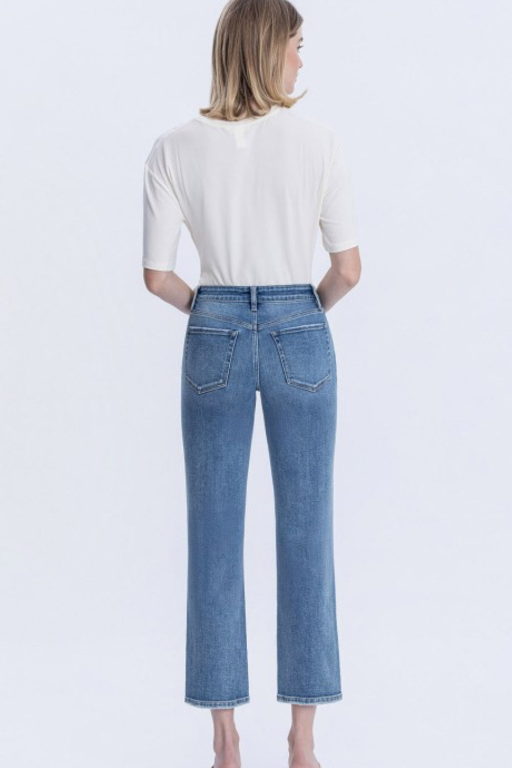 HIGH RISE DISTRESSED ANKLE STRAIGHT JEANS COMFORT STRETCH DENIM, HIGH RISE WAIST, 5 POCKETS, DISTRESSED DETAIL
